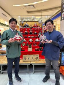 特に工房見学や面相描きなどでお世話になっている鈴木人形さんからは伝統的な七段飾りの雛人形から人気アニメにも登場した現代風雛人形BELL′S KISS(ベルズキッス)を提供していただき、伝統と革新が融合した内容となっています。