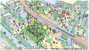 駅を中心に徒歩10分圏内(半径800メートル)のコンパクトな街で広さは約120ヘクタールとし、鉄道は高架で区画別に商業施設や企業、集合住宅などを集める。