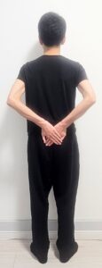 ①両手でお尻の真ん中にある仙骨をおさえるように手を当てます