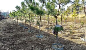 その構想を温めてきた地元NPO法人(ためぞうクラブ)が、5年前に鹿室の農家さんの協力を得て、赤松と黒松の苗木を計100本購入して育て、移植すべき段階にまで生長しており無償で提供予定である。