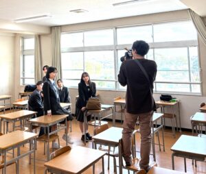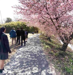 河津桜が美しい河原のシーンから、学校の教室での何気ないシーンまで、丸一日の撮影でしたが、生徒たちはプロの俳優さんやスタッフの方々との共演をとても楽しんでいました。