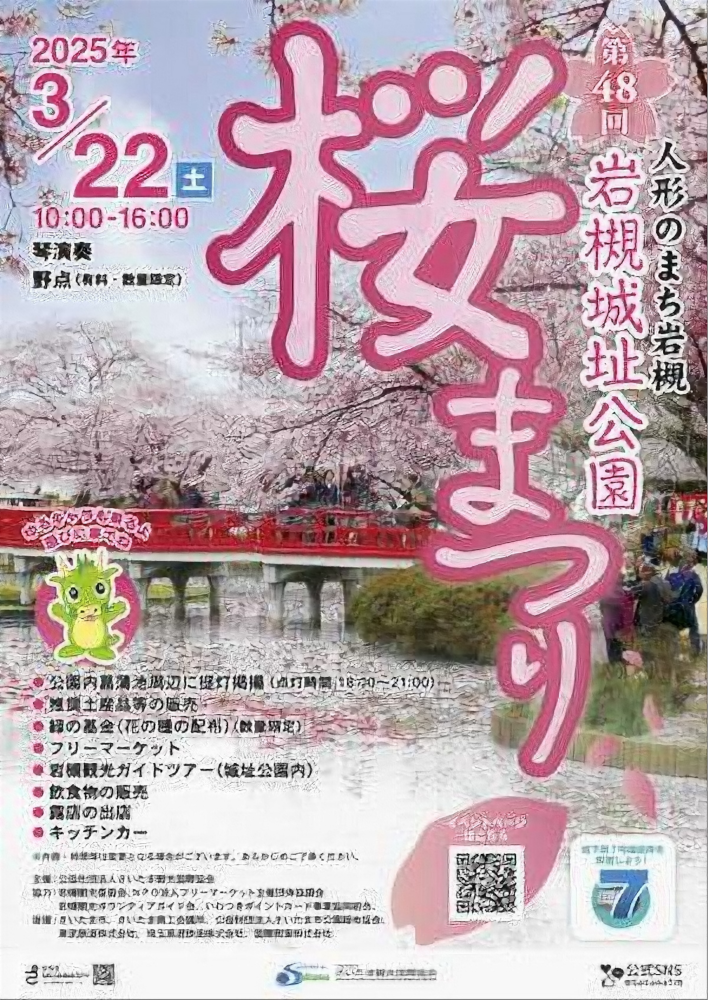 桜まつりイベントは3月28日(土)10:00~16:00。イベントでは、琴演奏(10:30 12:00 13:00 14:00)、野点(有料:数量限定)、緑の募金活動等(数量限定:花の種等の配布)、フリーマーケット、岩槻観光ボランティアガイド会の無料公園内ツアー(10:30 13:00 14:30)、飲食物の販売(露天、キッチンカー、テント出店)が予定されている。