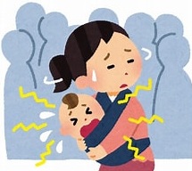 混んでいる電車の中で、乳児を抱えているお母さんが、なきじゃくる赤ちゃんをなきやませることができなくて、困っているという場面に遭遇したことがあります。