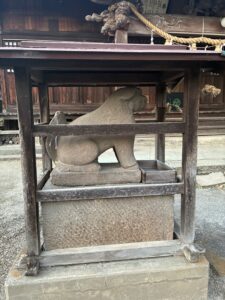 それは、越谷の久伊豆神社の同様に本殿前にある狛犬でした。