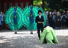 同神社は、平成30年に御下賜より80年を記念して「孔雀の舞」を創作し、春季例大祭で奉納されている。
